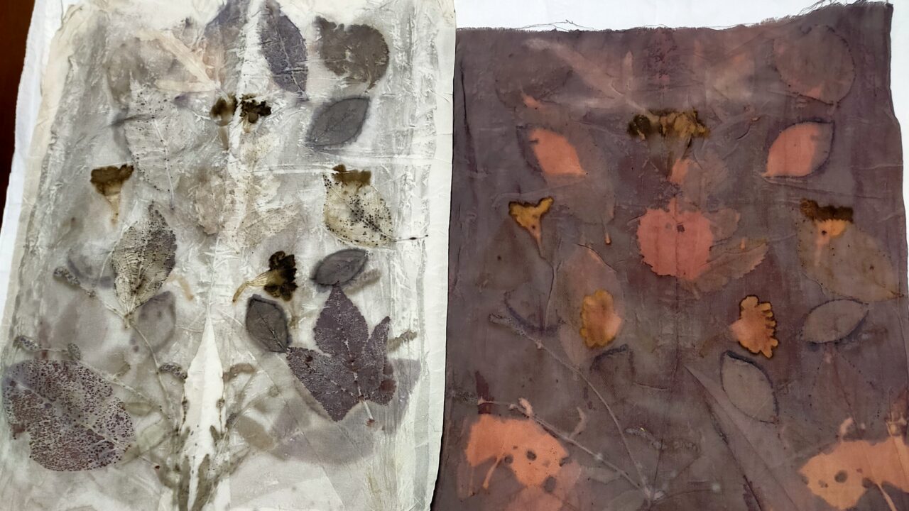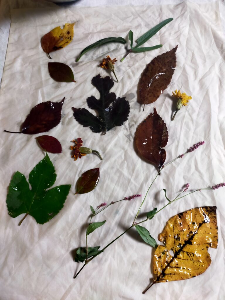 エコプリントとは、草花の「色」や「形」をそのまま布や紙にうつしとる自然染めの方法です。
