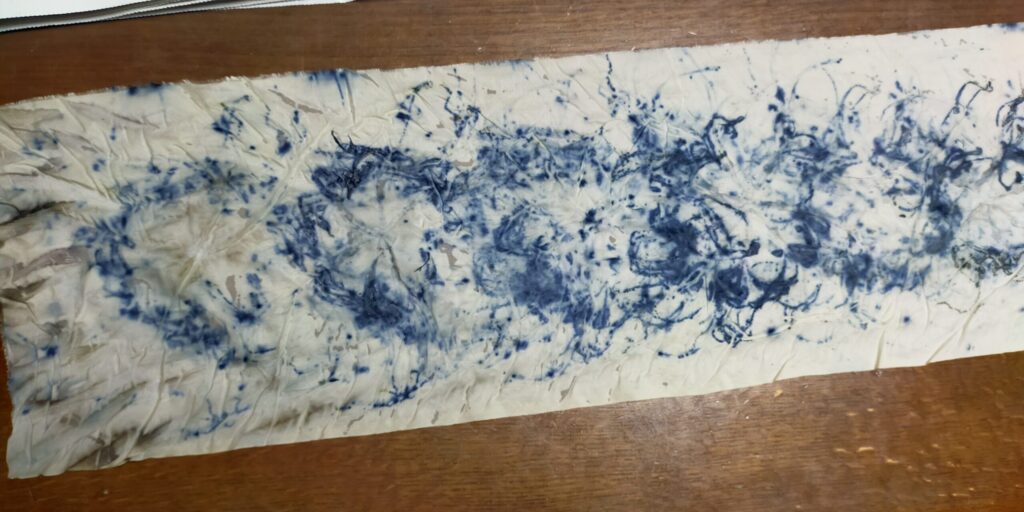 鉄媒染にするとあら不思議。綺麗なブルーに変化しました。