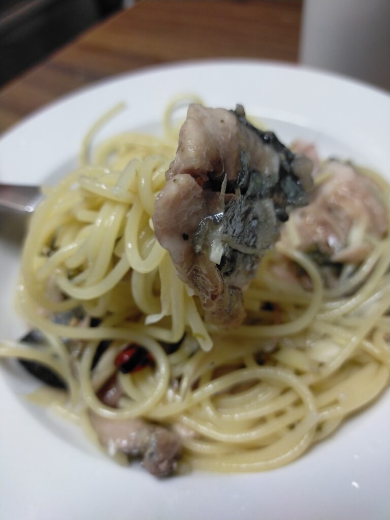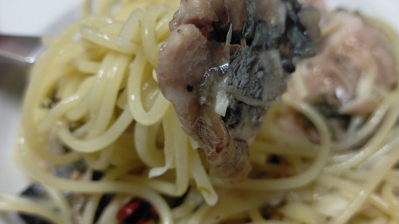 このパスタは秋刀魚を味わうパスタなので余計な具材は入れない方がいい気がします。