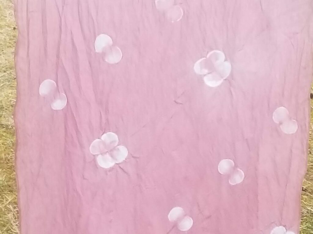 こちらは数年前山桜はの枝で染めたものですが、美しいピンクです。