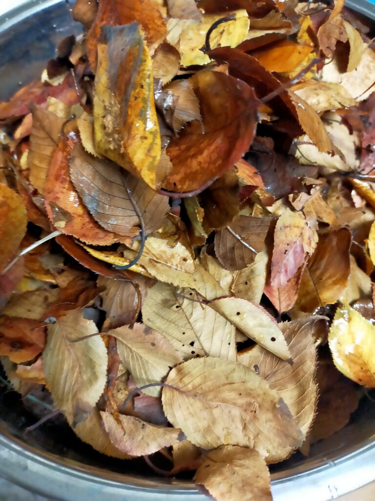 桜は枝で染めたことはあったのですが、枝というのはなかなかすぐには手に入らないものですが、秋の落ち葉はたくさん手に入ることに気づきました