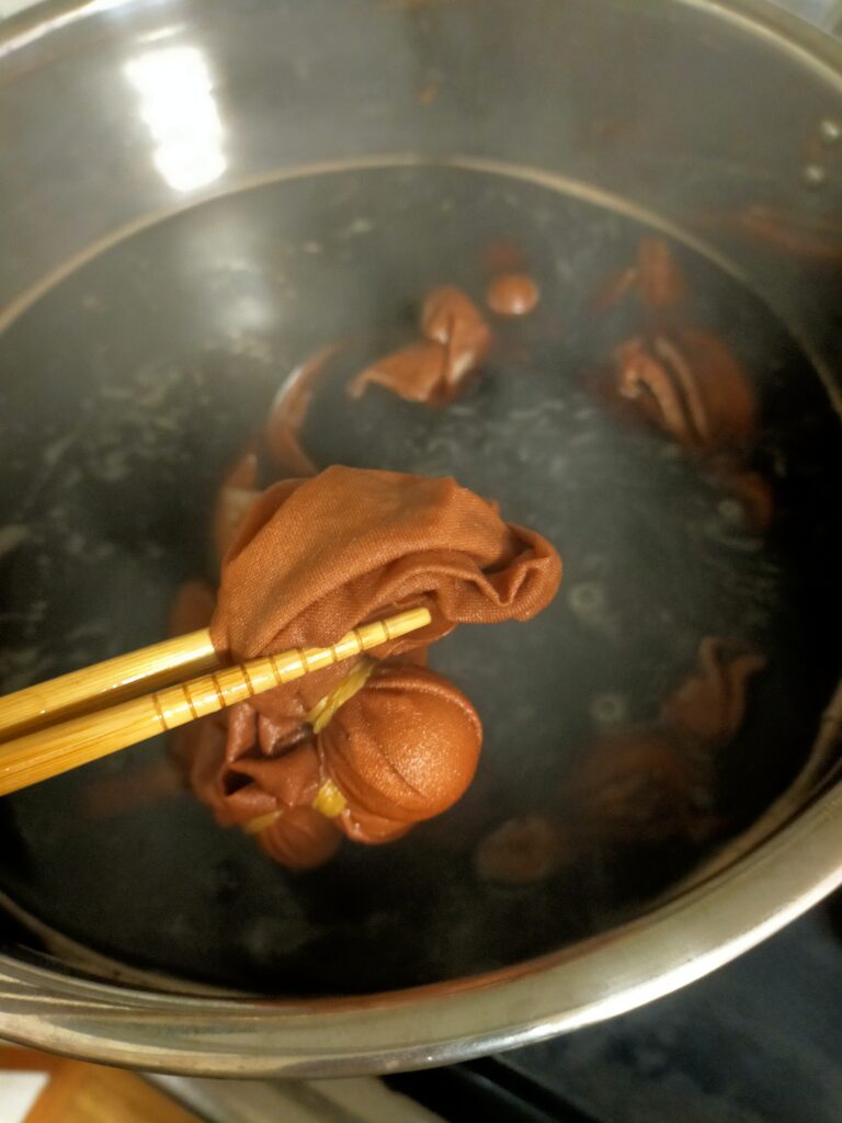 調べると桜は煮出して色を出してから3日ぐらいすると酸化して赤がもっと出るとのことなのでそれをやってみることにしました。